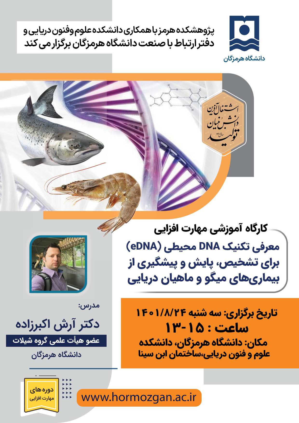کارگاه آموزشی مهارت افزایی/ معرفی تکنیک DNA محیطی (eDNA) برای تشخیص، پایش و پیشگیری از بیماریهای میگو و ماهیان دریایی