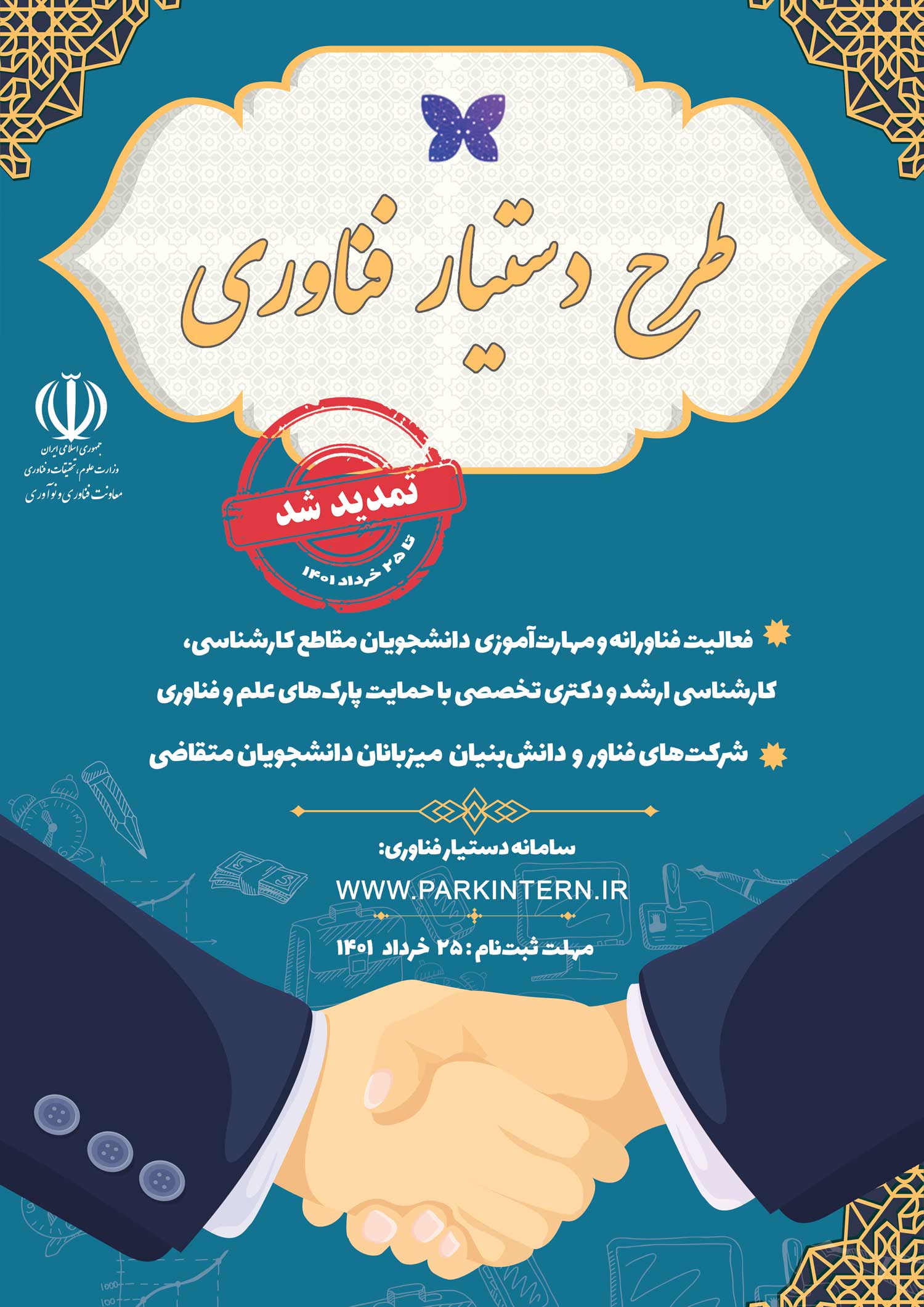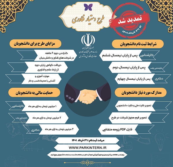تمدید مهلت ثبت نام طرح دستیار فناوری تا تاریخ 1401/03/31