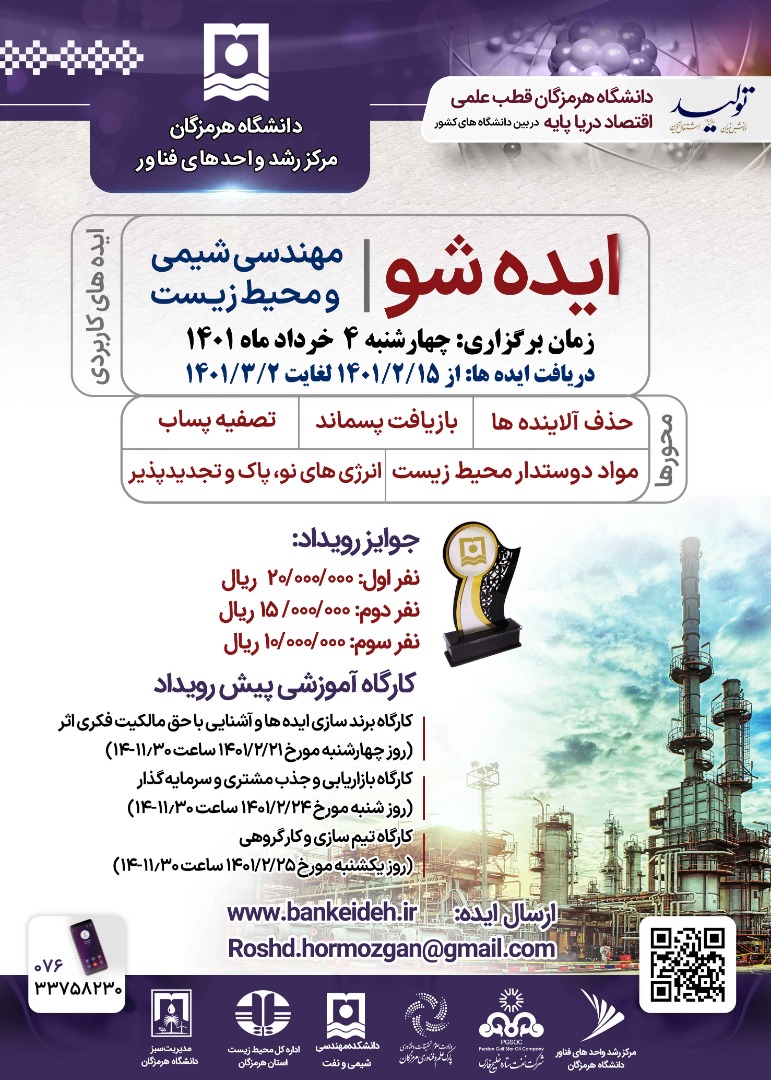 برگزاری ایده شو با موضوع مهندسی شیمی و محیط زیست در دانشگاه هرمزگان