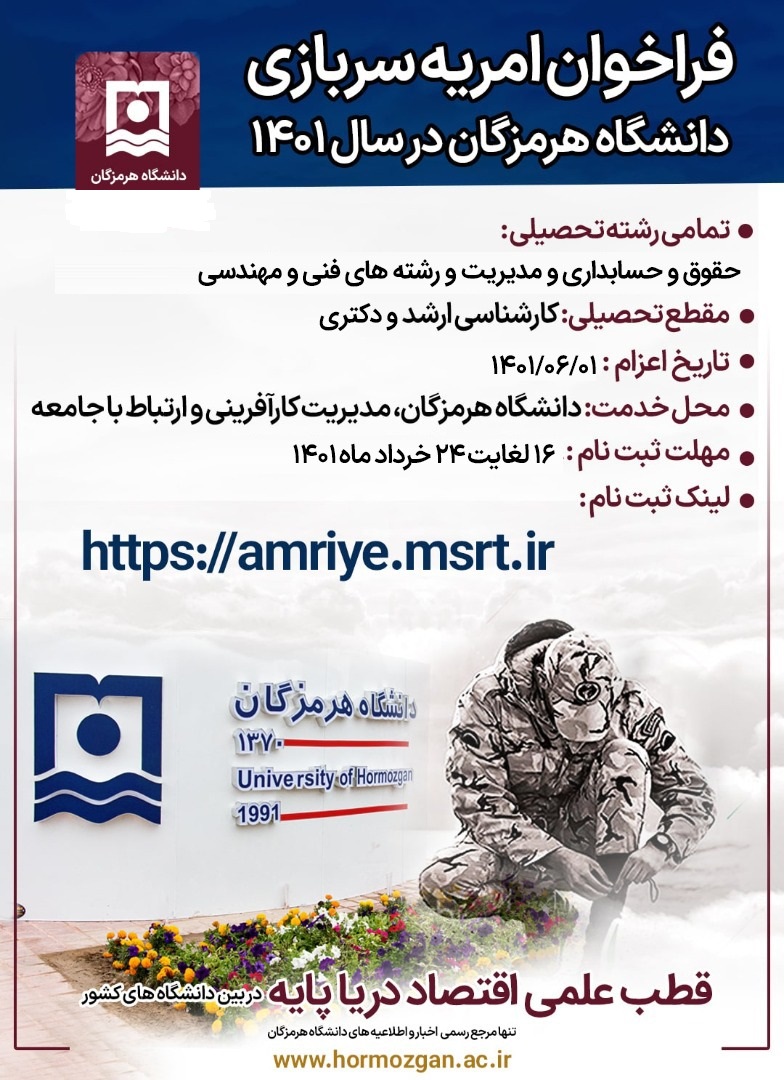تمدید مهلت ثبت نام فراخوان امریه سربازی تا تاریخ 1401/03/26