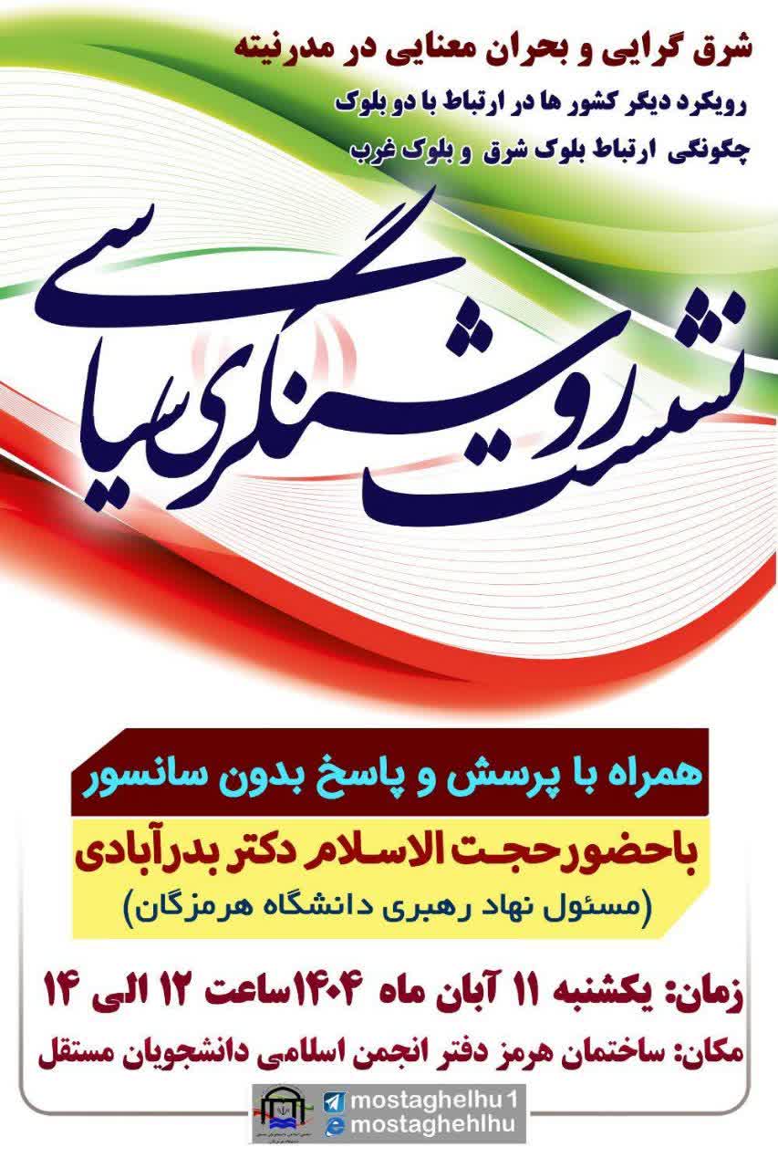 انجمن اسلامی دانشجویان مستقل د انشگاه هرمزگان برگزار می‌نماید: