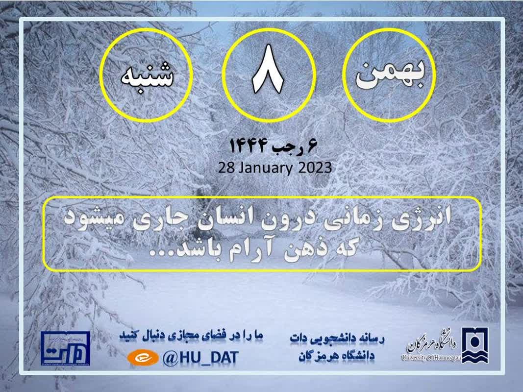 تقویم امروز ٨ بهمن ماه