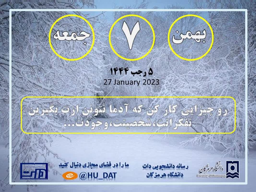 تقویم امروز ٧ بهمن ماه