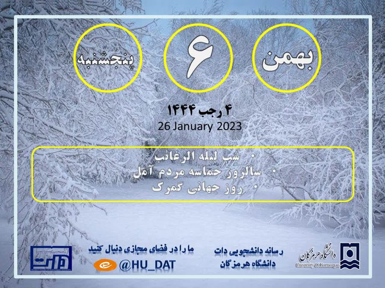 تقویم امروز ۶ بهمن ماه