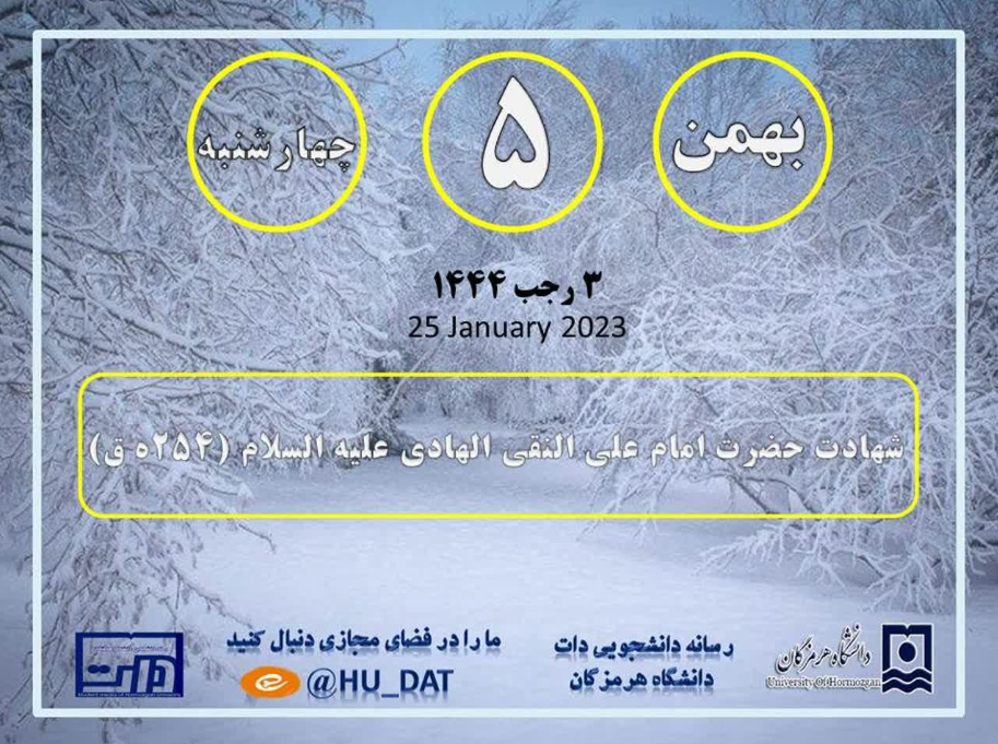 تقویم امروز ۵ بهمن ماه
