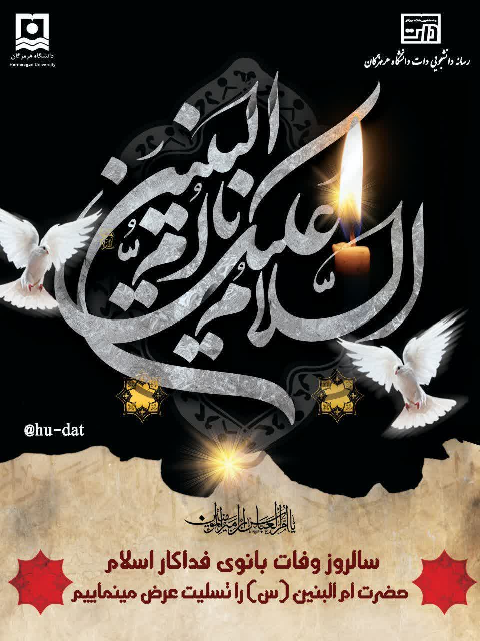 سالروز وفات حضرت ام البنین مادر بزرگوارحضرت عباس علیه السلام همسر گرامی امیر مؤمنان علی (علیه السلام) الگوی زنان عاشورایی تسلیت عرض می نماییم.