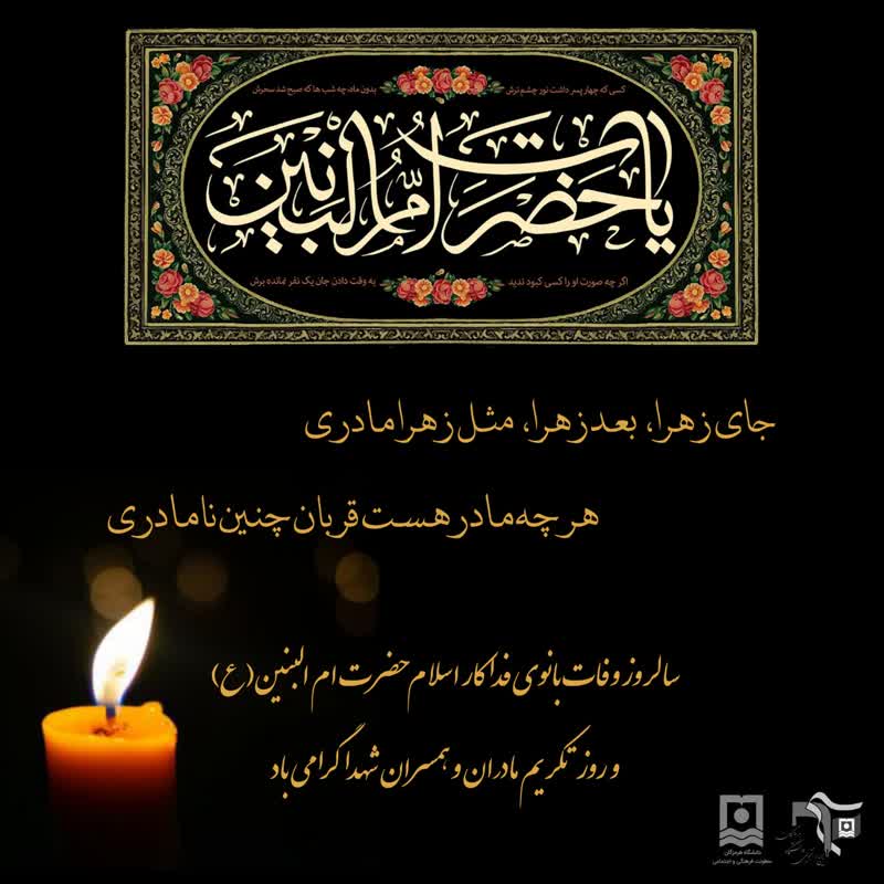 سالروز وفات بانوی فداکار اسلام حضرت ام البنین(ع) و روز تکریم مادران و همسران شهدا گرامی باد