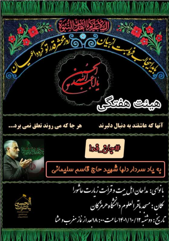 هیئت هفتگی(بانوای:مداحان اهل بیت و قرائت زیارت عاشور)