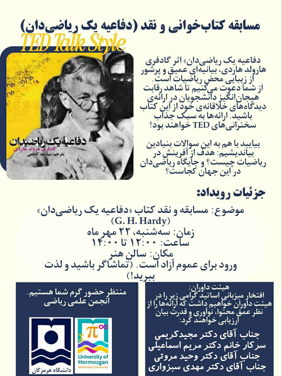 دعوت به حضور در مسابقه نوآورانه «کتاب‌خوانی همراه با سخنرانی تد»: فرصتی برای تلفیق ادبیات و ریاضی