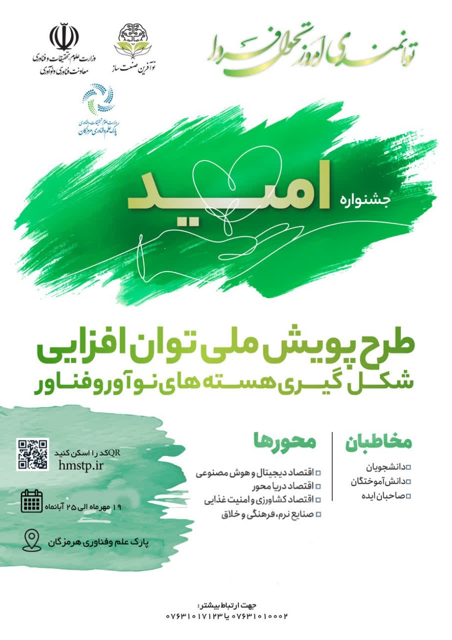 برگزاری جشنواره امید در پارک علم و فناوری هرمزگان با هدف توان‌افزایی و جذب هسته‌های نوآور