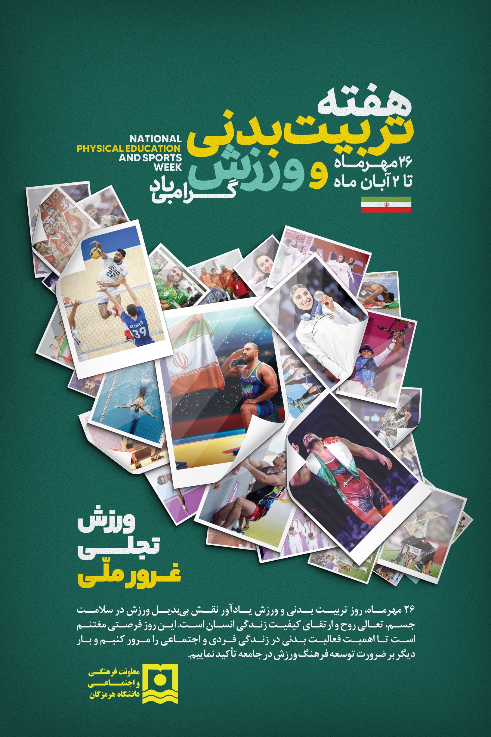 پیام تبریک معاون فرهنگی و اجتماعی دانشگاه هرمزگان به مناسبت هفته تربیت‌بدنی و ورزش: