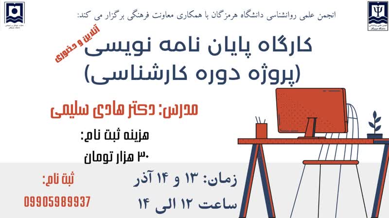 انجمن علمی روانشناسی برگزار می کند:کارگاه پایان‌نامه نویسی( پروژه دوره کارشناسی)