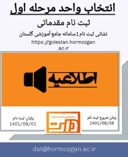 اطلاعیه انتخاب واحد مرحله اول (ثبت نام مقدماتی )زمان ثبت