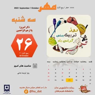 تقویم امروز ٢۶ مهر ماه(روز تربیت بدنی گرامی باد)