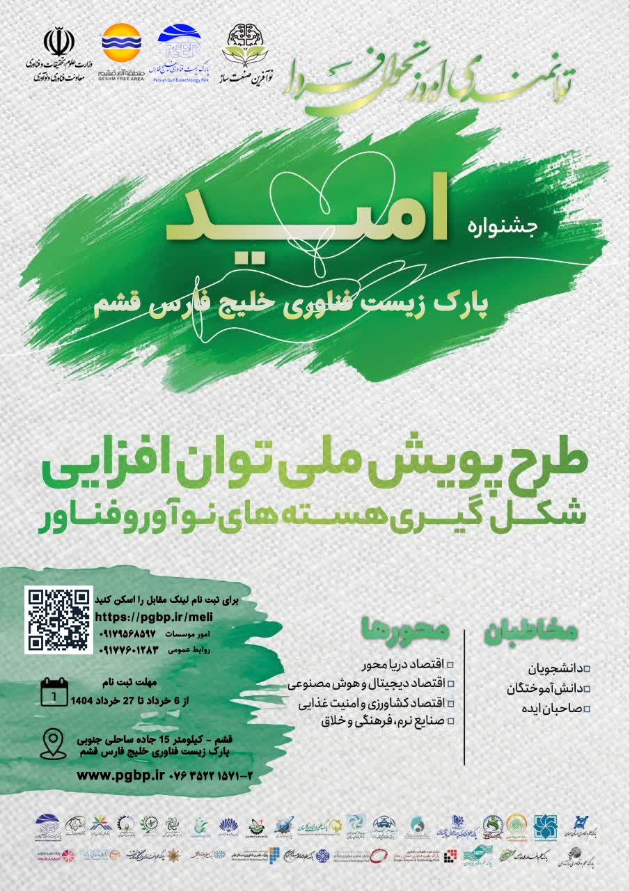 پارک زیست فناوری خلیج فارس قشم با همکاری وزارت علوم، تحقیقات و فناوری برگزار می‌نماید: