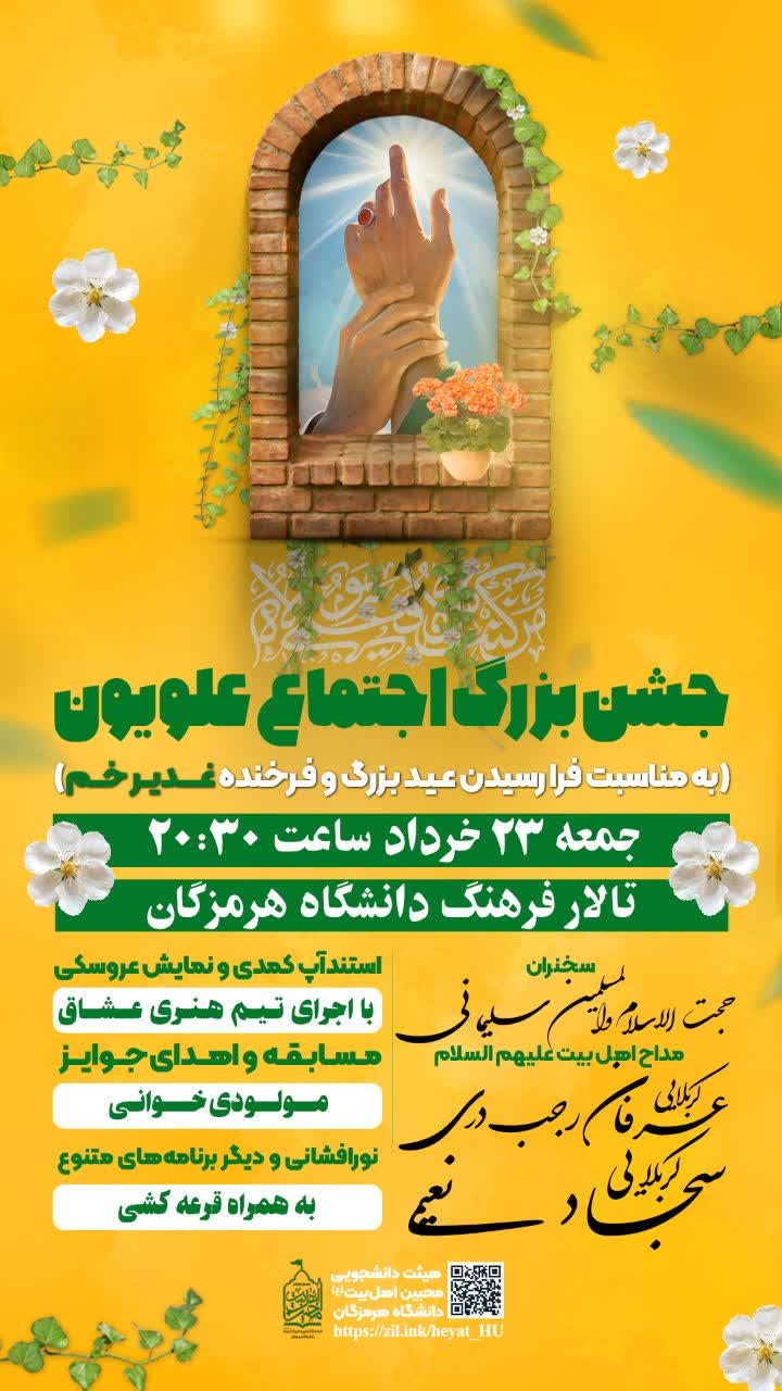 جشن بزرگ اجتماع علویون به مناسبت عید سعید غدیر در دانشگاه هرمزگان برگزار می‌شود