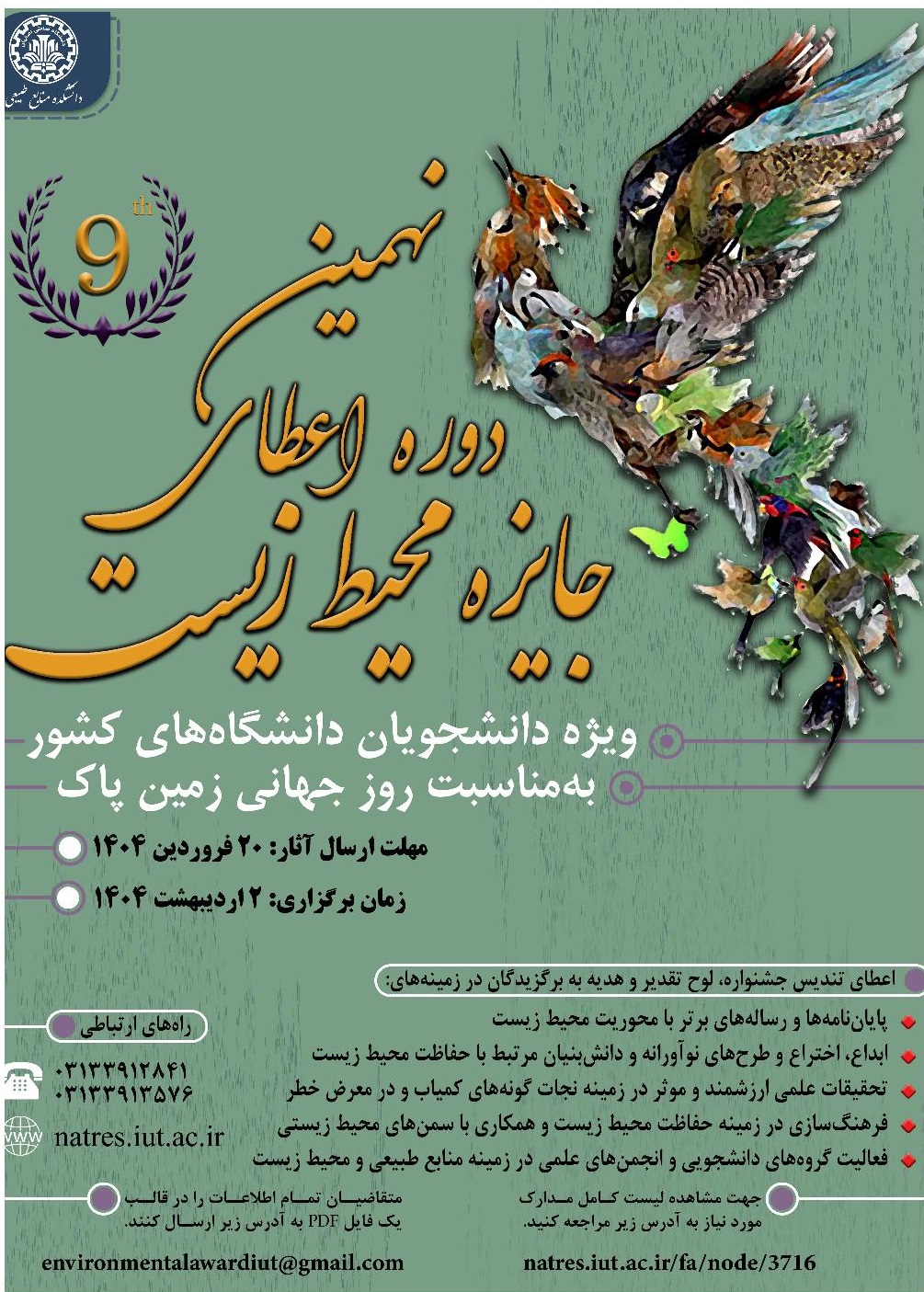 فراخوان "نهمین دوره اعطای جایزه محیط زیست" ویژه دانشجویان سراسر کشور