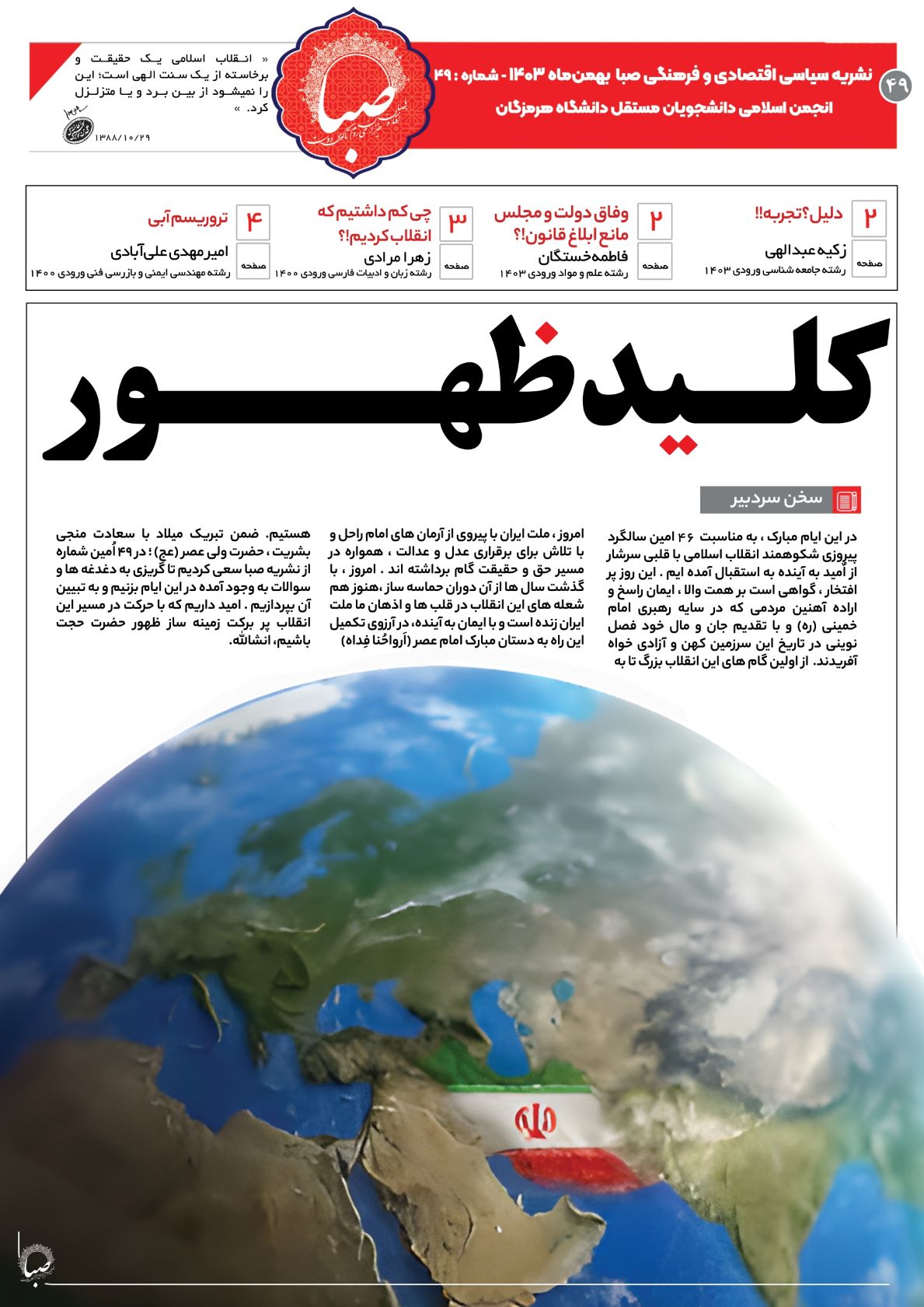 انتشار چهل و نهمین شماره از نشریه سیاسی، اقتصادی و فرهنگی صبا