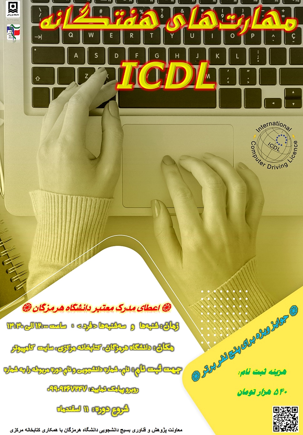 فراخوان دعوت به ثبت‌نام در "ششمین دوره مهارت‌های هفت‌گانه ICDL با اعطای مدرک معتبر دانشگاه هرمزگان"