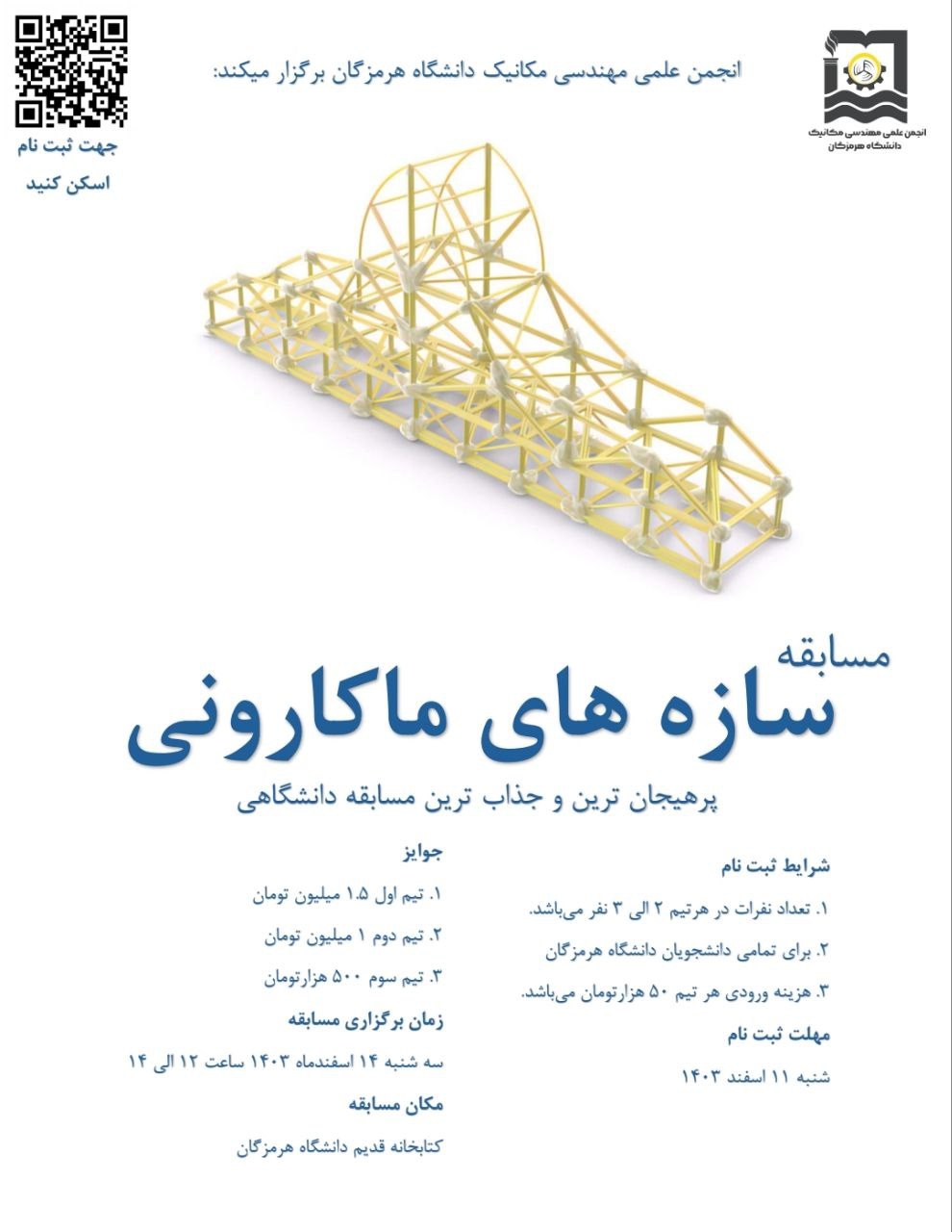 فراخوان دعوت به ثبت‌نام در مسابقه جذاب "سازه‌های ماکارونی"