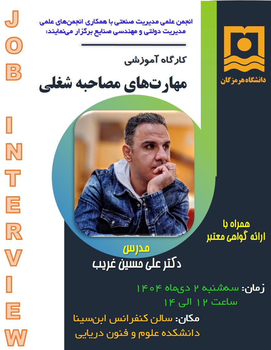 معاونت فرهنگی و اجتماعی دانشگاه هرمزگان با همکاری بخش آموزش‌های آزاد و مجازی برگزار می‌نماید: