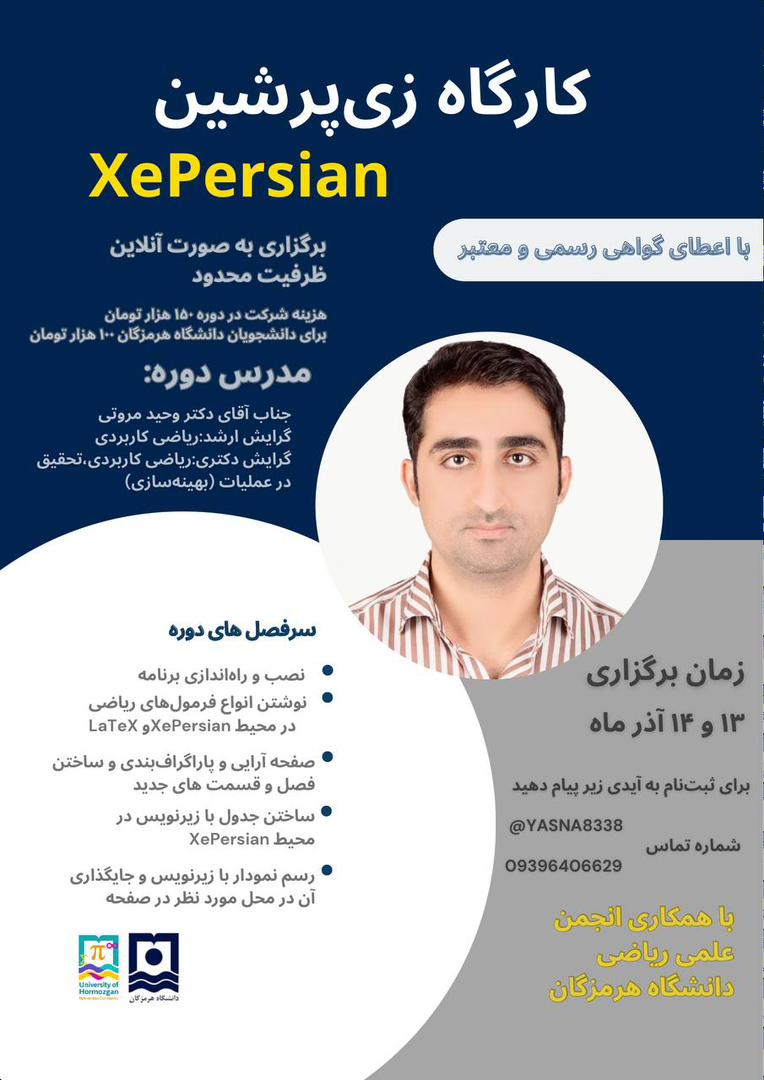 انجمن علمی ریاضی دانشگاه هرمزگان برگزار می‌نماید: