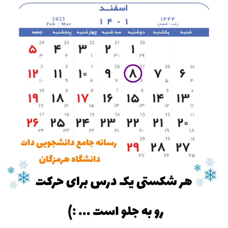 تقویم 8 اسفند ماه