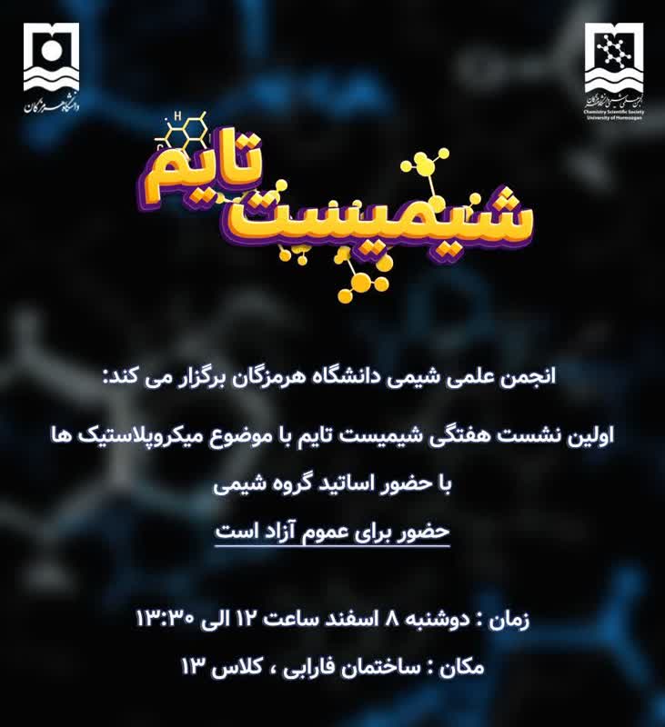 اولین نشست هفتگی &#171:شیمیست تایم&#187: موضوع: میکروپلاستیک ها