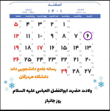 تقویم 6 اسفند ماه