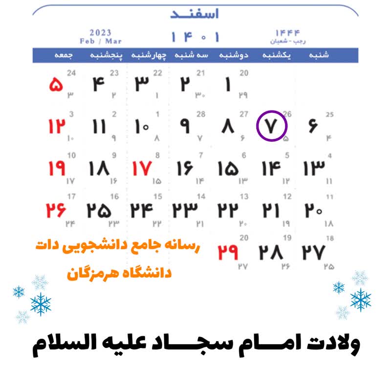 تقویم 7 اسفند ماه