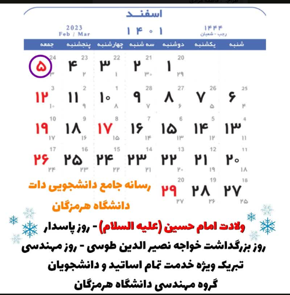 تقویم 5 اسفند ماه
