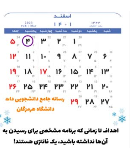تقویم 4 اسفند ماه