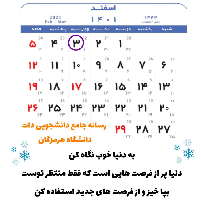 تقویم 3 اسفند ماه