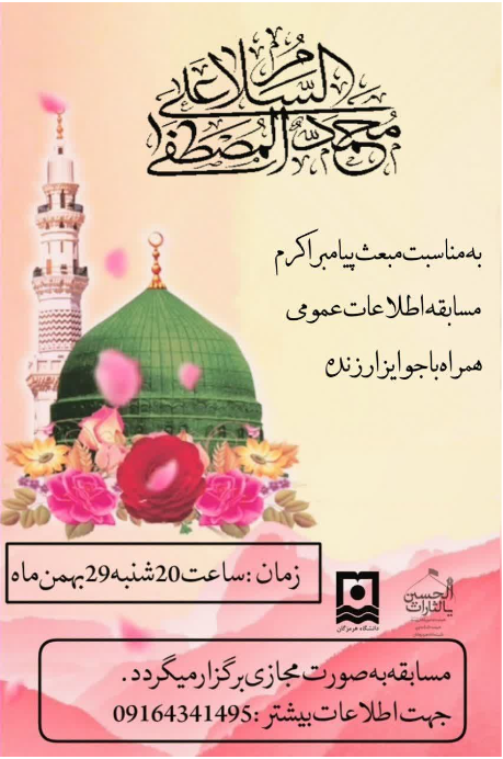 ه مناسبت‌ عید مبعث مسابقه مجازی در کانال ایتا هیئت دانشجویی برگزار می‌گردد