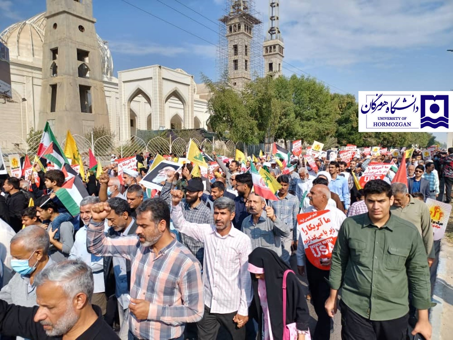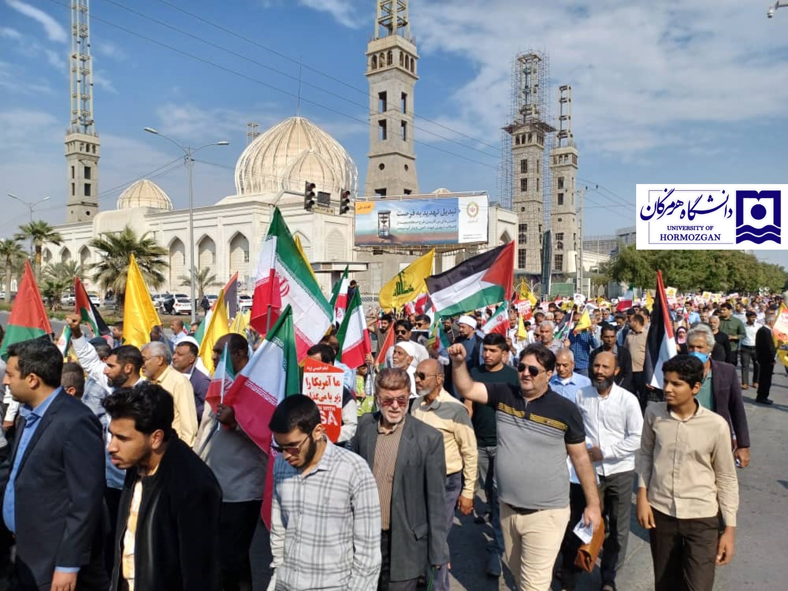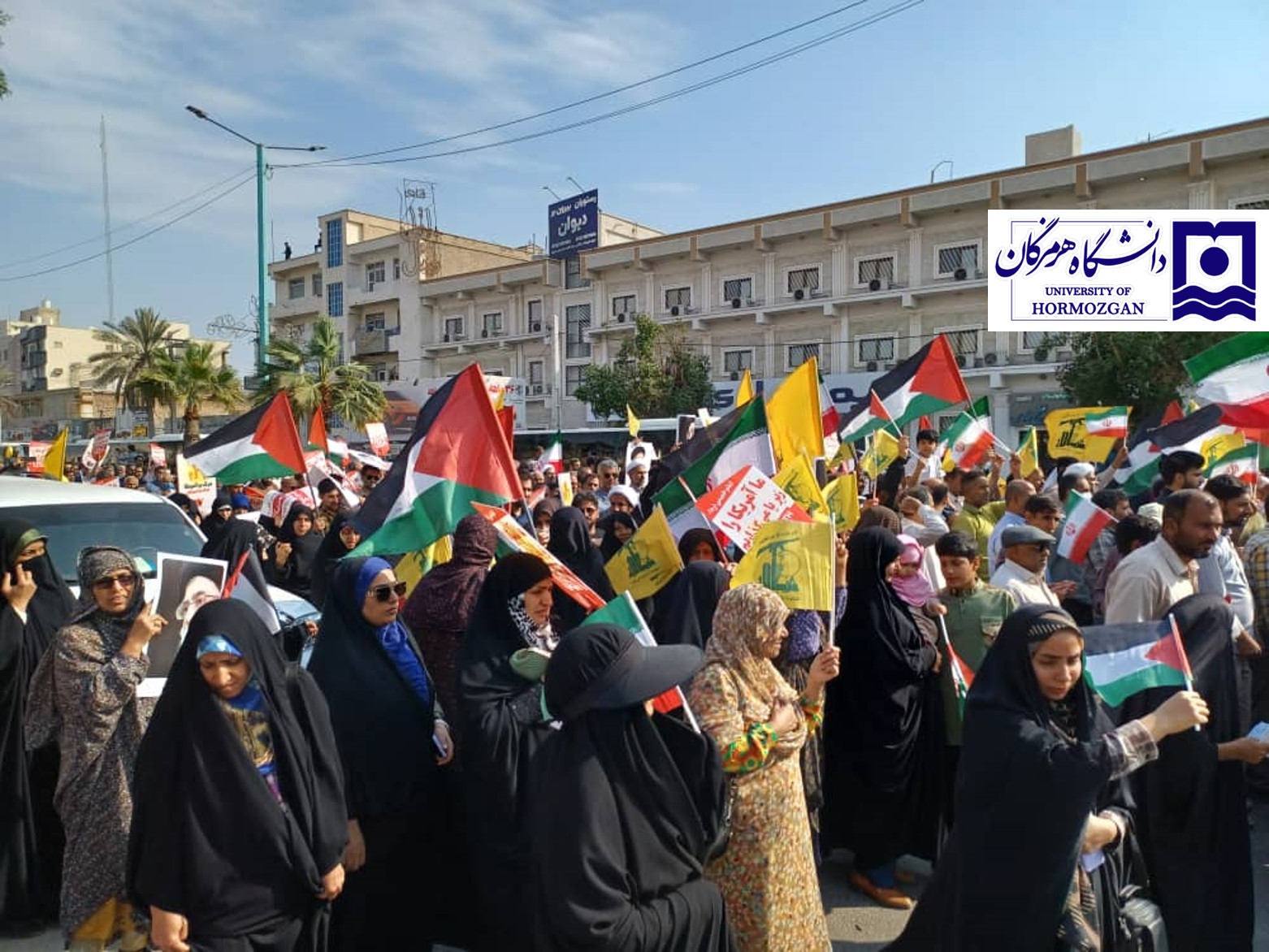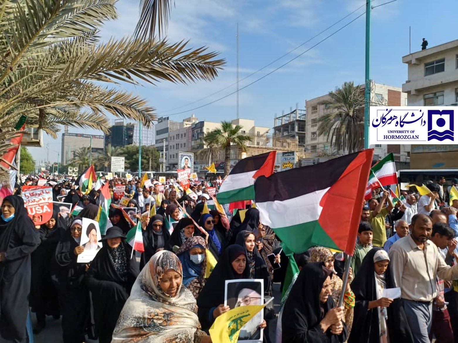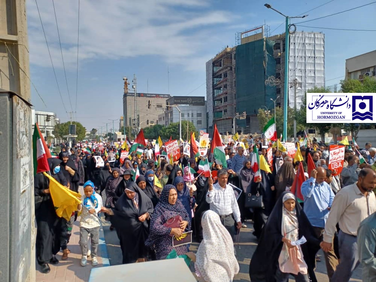 گزارش تصویری از حضور خانواده بزرگ دانشگاه هرمزگان در راهپیمایی «جمعه نصر» در بندرعباس