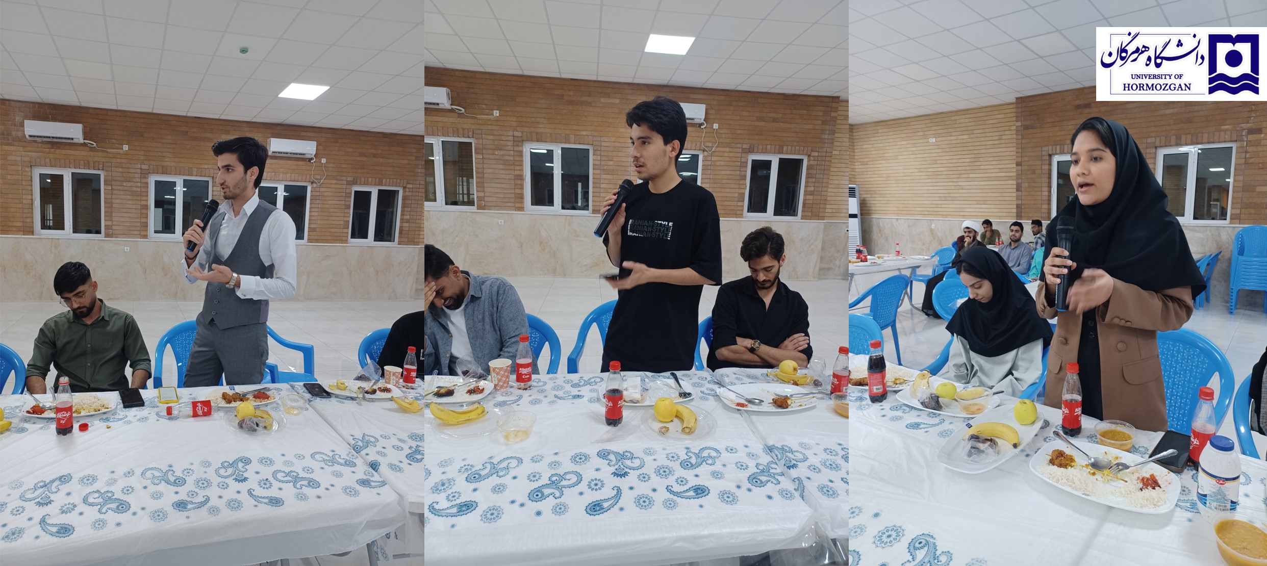 مراسم افطاری هیئت رئیسه دانشگاه هرمزگان با حضور نمایندگان گروه‌های دانشجویی در روز یکشنبه 19 اسفند 1403 برگزار شد. در این مراسم، دانشجویان دغدغه‌های خود را مطرح کردند و مسئولان دانشگاه به سؤالات آنان پاسخ دادند.