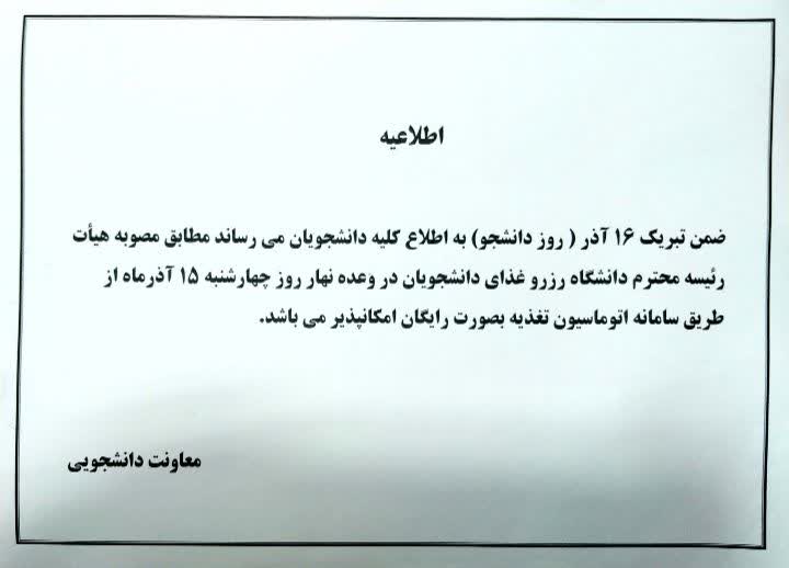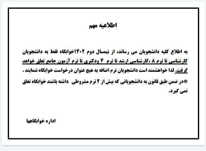 اطلاعیه مهم مربوط به دانشجویان خوابگاهی