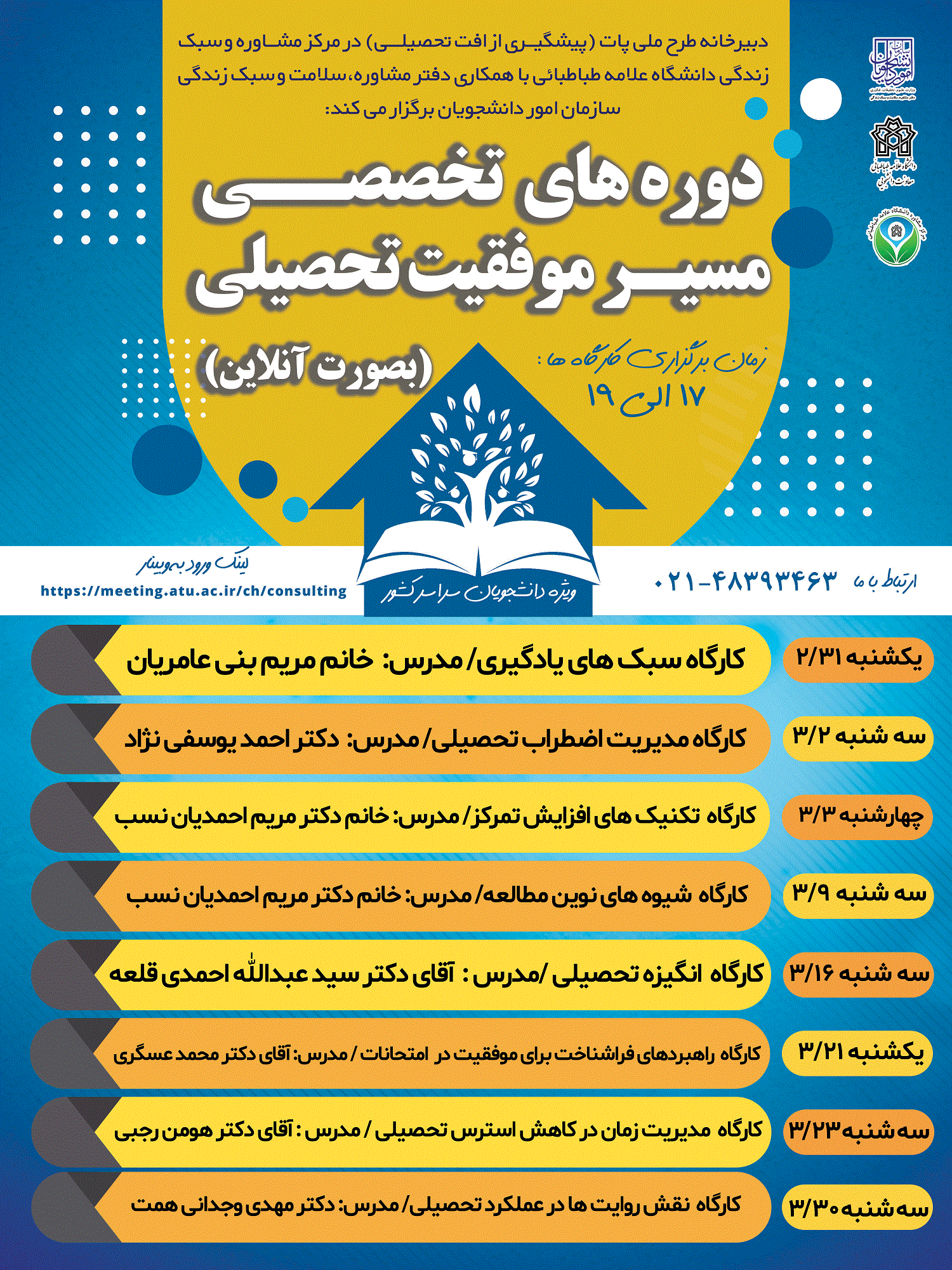 برگزاری دوره های تخصصی مسیر موفقیت تحصیلی (بصورت آنلاین)