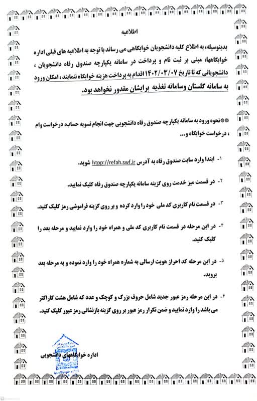 قابل توجه کلیه دانشجویان ساکن در خوابگاه ها