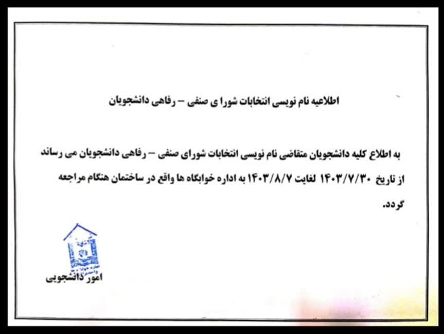 تمدید نام نویسی انتخابات شورای صنفی-رفاهی دانشجویان