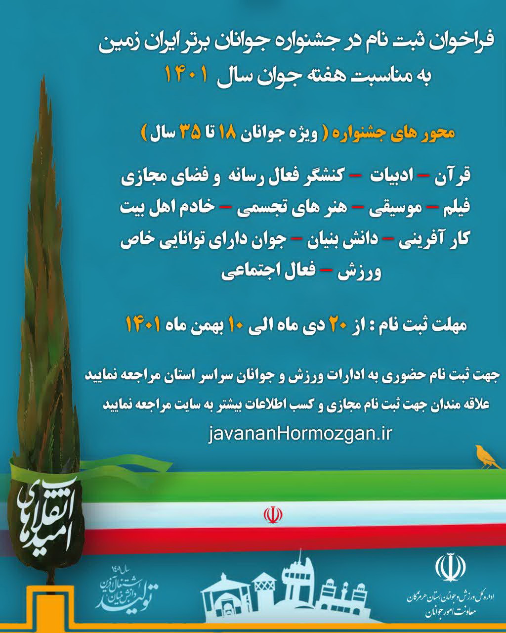 فراخوان ثبت نام در جشنواره جوانان برتر ایران زمین به مناسبت هفته جوان سال 1401