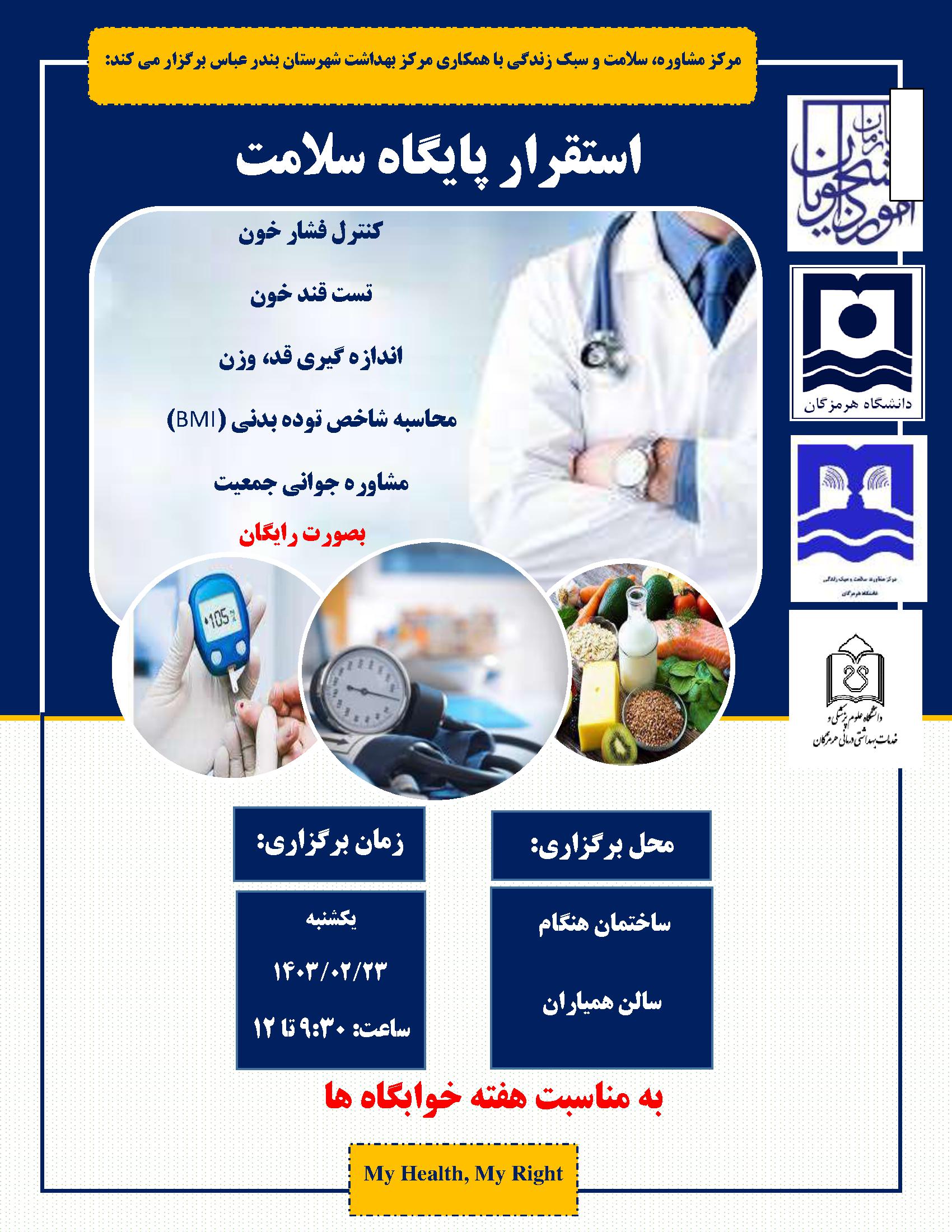 مرکز مشاوره، سلامت و سبک زندگی با همکاری مرکز بهداشت شهرستان بندرعباس برگزار می کند.